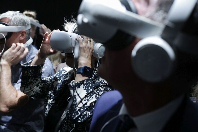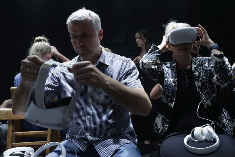 The exhibition begins outside the mobile container, as its seemingly uniformly black walls, when seen up close, are covered with hundreds of names and places associated with Poles who helped Jews. Once inside, in the middle of the room you'll see an installation with 30 wooden chairs, with VR headsets lying on them ready for use, thus allowing visitors to enter the world of Virtual Reality.