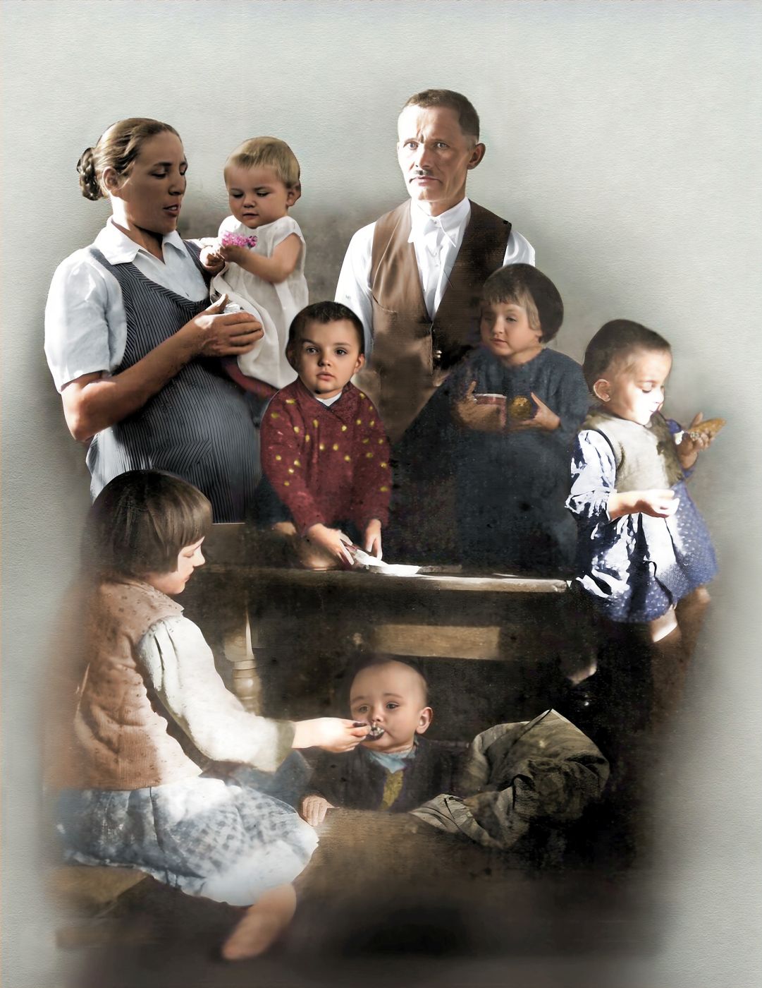Rodzina Ulmów (ze zbiorów Mateusza Szpytmy), koloryzacja Mikołaj Kaczmarek