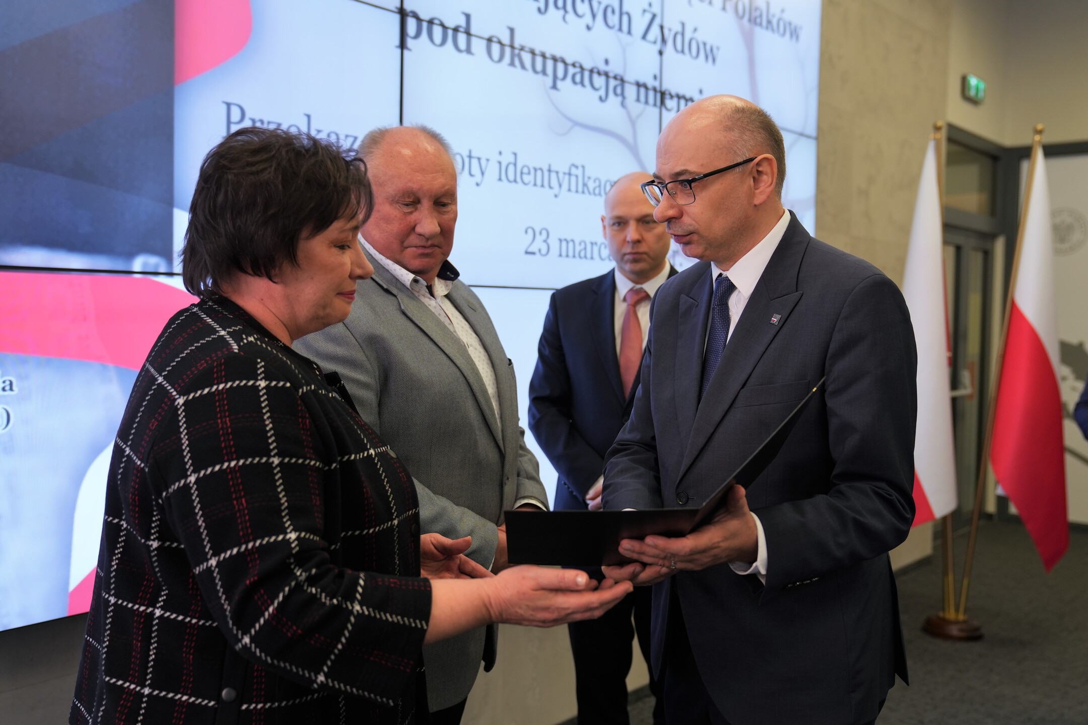 • Rodzina Pochwatków – bohaterowie, którzy ponieśli śmierć za pomoc Żydom. Na zdj. od lewej: zastępca prezesa IPN dr Mateusz Szpytma i dyrektor lubelskiego Oddziału IPN dr Robert Derewenda – Lublin, 23 marca 2026. Fot. Dominik Borek (IPN) Rodzina Pochwatków – bohaterowie, którzy ponieśli śmierć za pomoc Żydom. Na zdj. od lewej: zastępca prezesa IPN dr Mateusz Szpytma i dyrektor lubelskiego Oddziału IPN dr Robert Derewenda – Lublin, 23 marca 2026. Fot. Dominik Borek (IPN)
